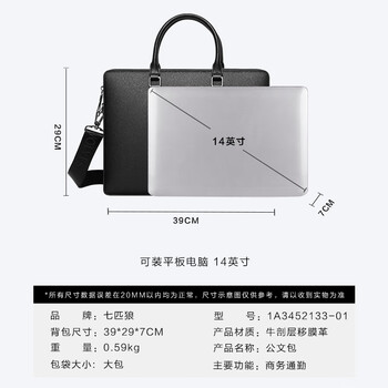 七匹狼男士商务公文包行政出差电脑包14英寸多功能手提包时尚节日礼物