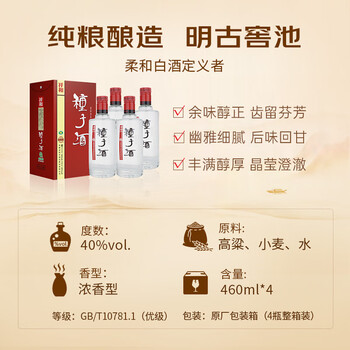 金种子 祥和种子酒 浓香型白酒 40度 460ml*4瓶 整箱装 热门商品