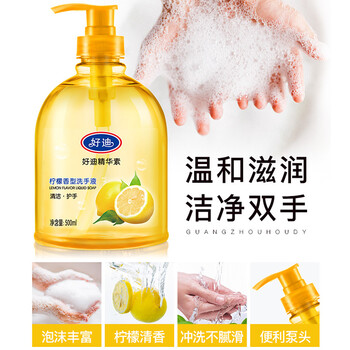 好迪洗手液家庭装500ml+500ml补充装柠檬香型除味去污易冲洗滋润护手