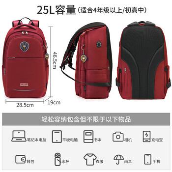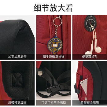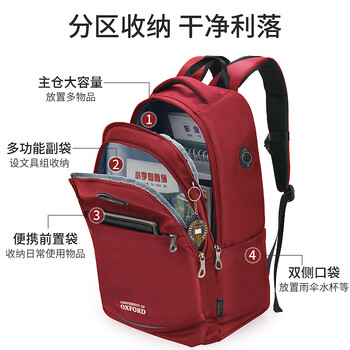 UNIVERSITY OF OXFORD牛津大学书包初中生男中学生女生双肩包休闲大容量背包X796B枣红