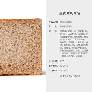 来伊份黑麦吐司面包450g 全麦早餐轻食代餐健身糕点点心蛋糕休闲零食