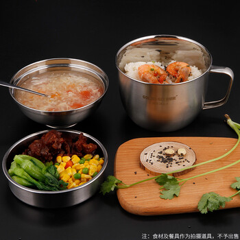 金钥匙304不锈钢饭盒14cm二层学生便当盒食堂快餐盒快餐杯GK-A140T