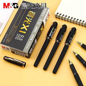 晨光(M&G)文具AGPA9803/0.7mm大笔画中性笔头黑色X2办公签字笔书写黑色 12支/盒 1盒装