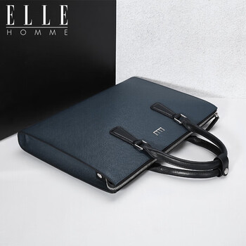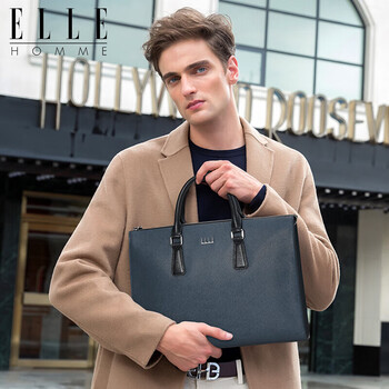 ELLE HOMME 男士商务公文包 个性时尚手提包横款牛皮大容量电脑包EA988200310蓝色
