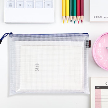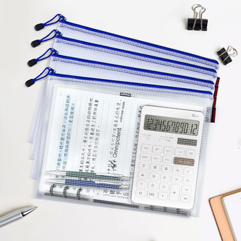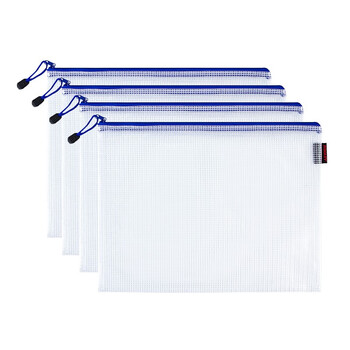 金得利 4个装B5升级加厚网格拉链袋文件袋资料袋办公文件整理收纳袋防水学生文具整理袋子FB8803