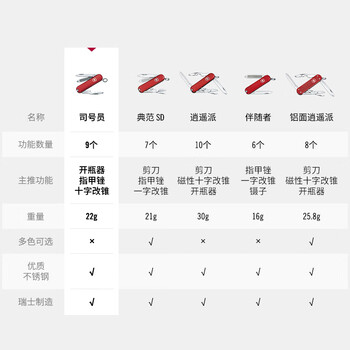 维氏瑞士军刀司号员9项多功能水果刀刀折叠刀红色0.6163
