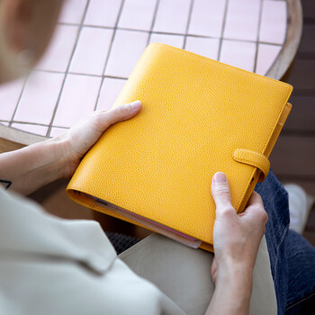 Filofax记事本大号高档笔记本手帐牛皮荔枝纹大型活页本finsbury系列A5芥末黄022621