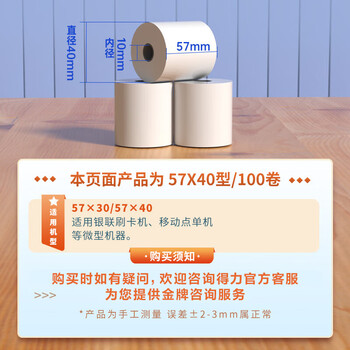 57mm*40mm热敏收银纸×100卷/箱,12米/卷