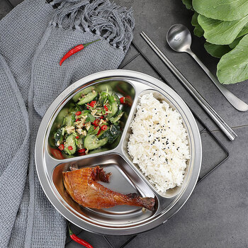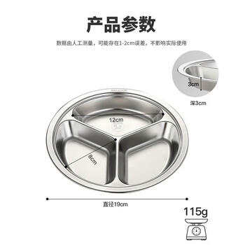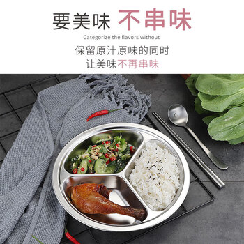 美厨(maxcook)304不锈钢餐盘饭盒分格 快餐盘学生餐盒三格加厚19cm MCFT802