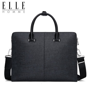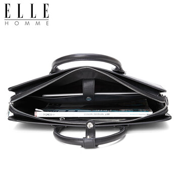 ELLE HOMME手提包男简约时尚商务包横款牛皮公文包休闲单肩斜挎包生日礼物