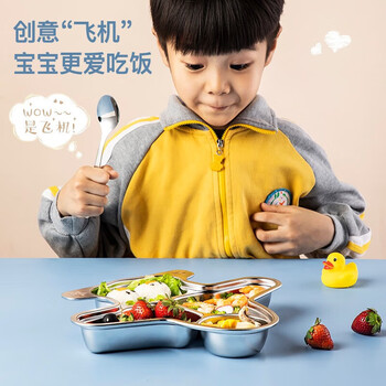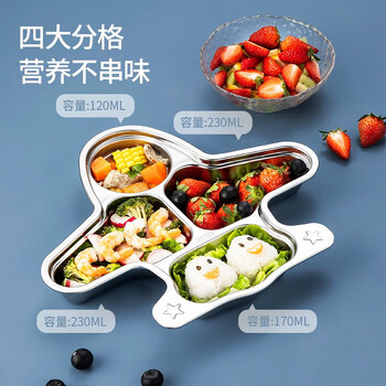 美厨(maxcook)316不锈钢餐盘饭盒碗 配勺子加厚儿童分格餐盘卡通 4格MCFT6792