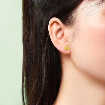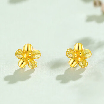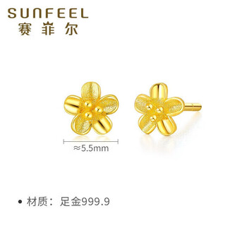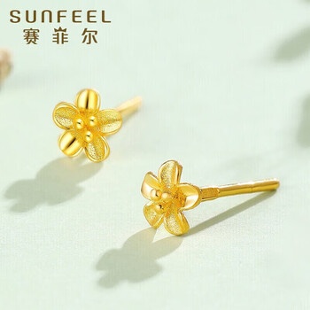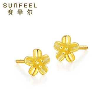 赛菲尔黄金耳钉女足金999.9桃花小清新金花耳环耳饰送女友一对 约0.75克