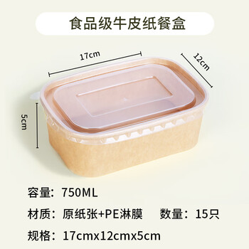 芳草地 一次性带盖加厚牛皮纸打包盒750ml*15套