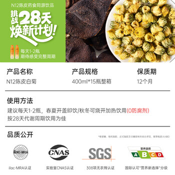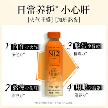 N12陈皮菊花茶0糖0脂低卡清健康火气无糖茶植物饮料400ml15瓶整箱装