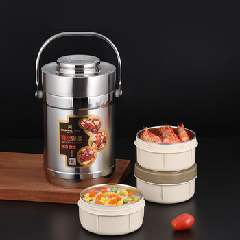 金钥匙(GOLDEN KEY)304保温提锅经典2L全钢真空三格便当保温饭盒保温桶 GK-JBD2000T