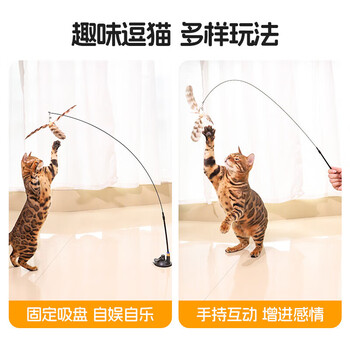 欢宠网猫玩具猫咪吸盘逗猫棒自动羽毛自嗨解闷神器铃铛猫猫幼猫小猫宠物