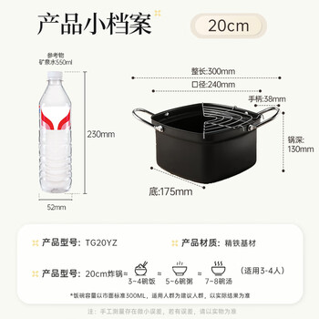 炊大皇油炸锅+沥油架 20cm日式天妇罗 不粘锅平底锅铁锅 奶锅小汤锅