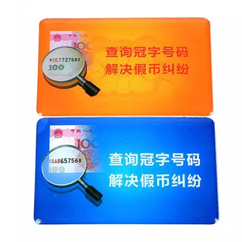 查询冠字号 蓝标黄标 蓝/黄 银行软标牌 滴塑 冠字号码牌 85*45mm 10个/组