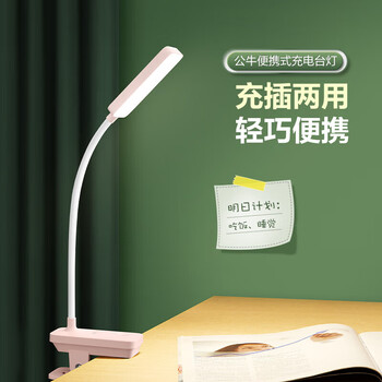 公牛(BULL)台灯ML-D004P-FD充插两用家用床头宿舍LED夹子台灯3档亮度粉色
