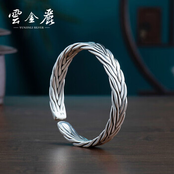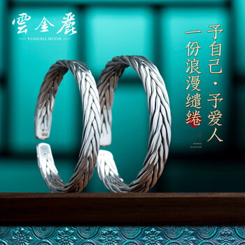 云金丽银手镯999足银男经典银饰情侣手镯编织时光银镯子送男友生日礼物
