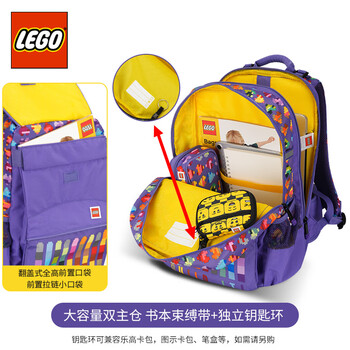 乐高(LEGO)书包学生女3-6年级双肩包轻背包大容量可调肩带护脊减负粉紫20192
