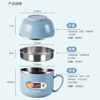 泰福高(TAFUCO)泡面碗304不锈钢食堂打饭多用隔热防烫学生一人食1.3L食品级T5271