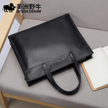美洲野牛公文包男士休闲手提包牛皮男包横款电脑包商务包礼物送老公