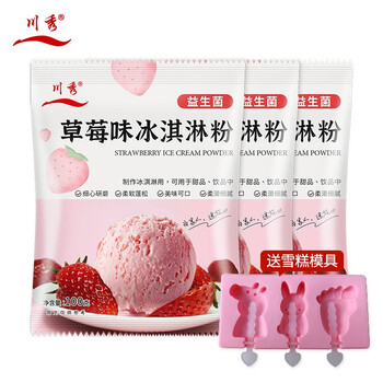川秀 草莓冰淇淋粉 自制家用冰淇淋原料软硬模具冰激凌 100g*3包