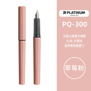 白金钢笔钢笔三年级小学生入门练字PQ-300小流星彩色马卡龙色钢笔升级02EF 极细字 草莓粉