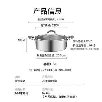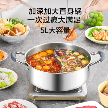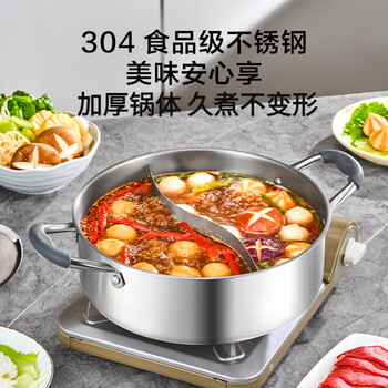 京东京造鸳鸯火锅专用锅 304不锈钢家用汤锅电磁炉通用 内径28cm
