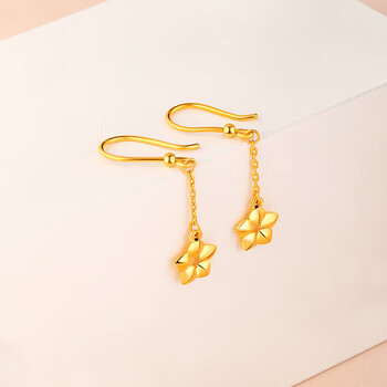 梦金园黄金耳环幸运星5D硬金耳钩耳饰一对生日礼物