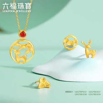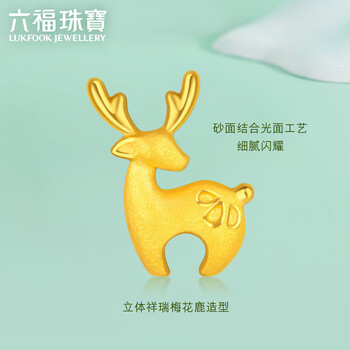 六福珠宝 足金小鹿黄金耳钉耳饰(单只) 计价 约1克