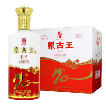 蒙古王 白酒 浓香型粮食酒 中度白酒礼盒整箱桶装 42度草原献礼500ml*6