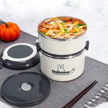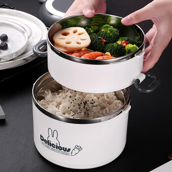 贝瑟斯304不锈钢饭盒学生保温双层餐盒 大容量上班族手提分层打饭桶1.7L