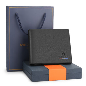 稻草人钱包男真头层牛皮钱夹短款横夹高档礼盒情人节礼物送男友老公