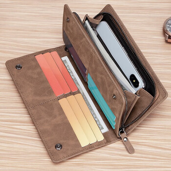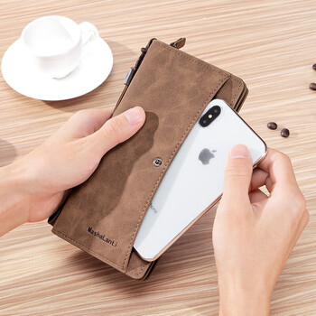 马莎兰缇(MashaLanti)男士钱包大容量皮钱夹长款拉链多功能手拿零钱卡包高档证件包一体