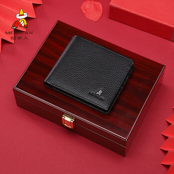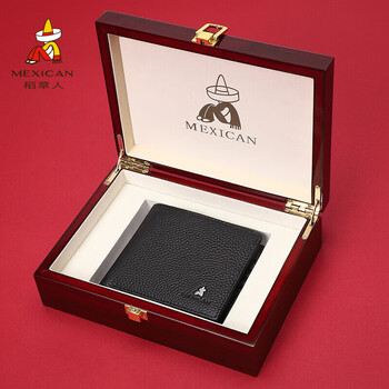 稻草人男钱包头层牛皮短款钱夹轻薄软高档礼盒生日礼物送男生爸爸