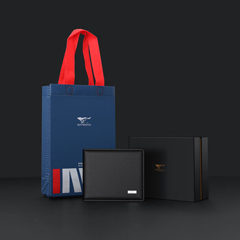 七匹狼钱包男士真牛皮卡包短款票夹礼盒送爸爸男友老公生日礼物