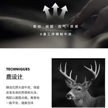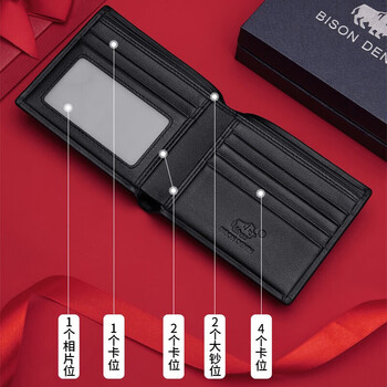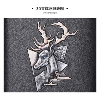 美洲野牛钱包男真皮夹卡包短款头层牛皮3D立体浮雕鹿头钱夹男士生日礼物