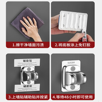 百字花洒支架304不锈钢免打孔喷头莲蓬淋浴头底座固定神器五档调节