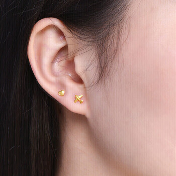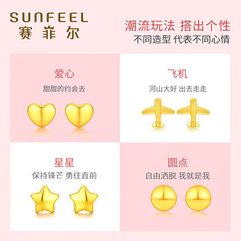 赛菲尔 黄金耳饰足金999.9女迷你养耳棒卡通耳钉 飞机约0.3克 单支售卖