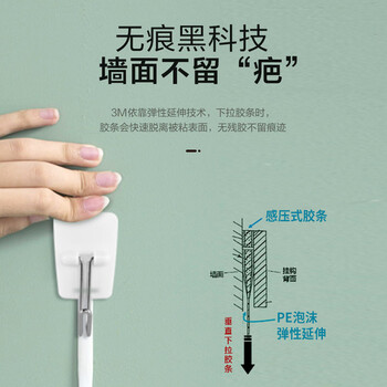 3M高曼厨房挂钩 强力粘钩免打孔厨具金属钩 免钉无痕不伤墙4只装
