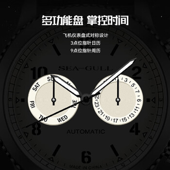 海鸥(SEAGULL)手表男自动机械表 日历星期双时区夜光男士手表生日礼物6183白盘
