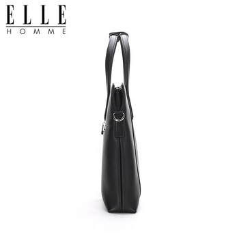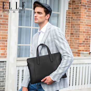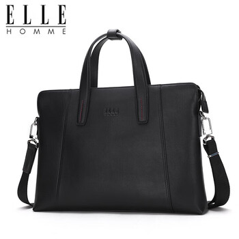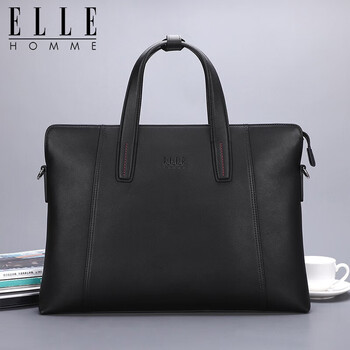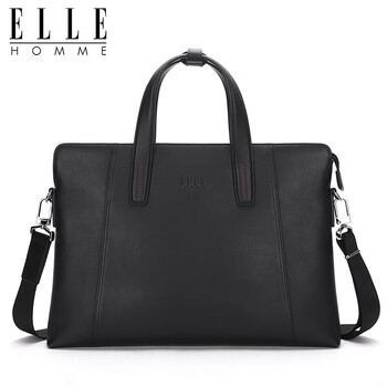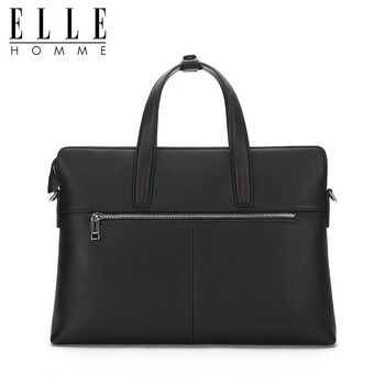 ELLE HOMME男士公文包 时尚真皮手提包 大容量牛皮单肩斜跨包商务14英寸电脑包0710黑色