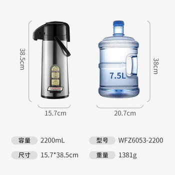 富光气压式保温壶2.2L大容量保温瓶压力壶家用开水瓶热水瓶玻璃内胆
