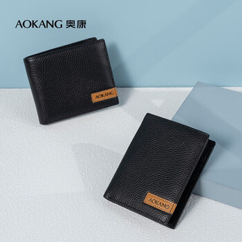 奥康男士钱包短款头层牛皮多功能商务皮夹横款钱夹节日礼物送老公