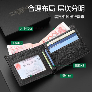 卡帝乐鳄鱼男士牛皮钱包时尚商务头层牛皮横短款多功能钱夹包送老公新年礼物
