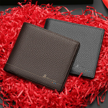 稻草人钱包男真头层牛皮横款商务短款皮夹时尚多卡位钱夹生日礼物