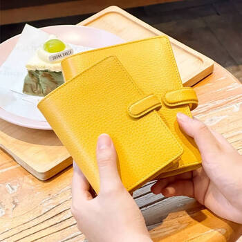 Filofax记事本便携mini小型高档笔记本手帐牛皮荔枝纹迷你活页本finsbury系列A7芥末黄022619