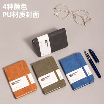 得力(deli)A7/96张便携笔记本子皮面本创意型口袋本迷你记事本单词手账本蓝BP119